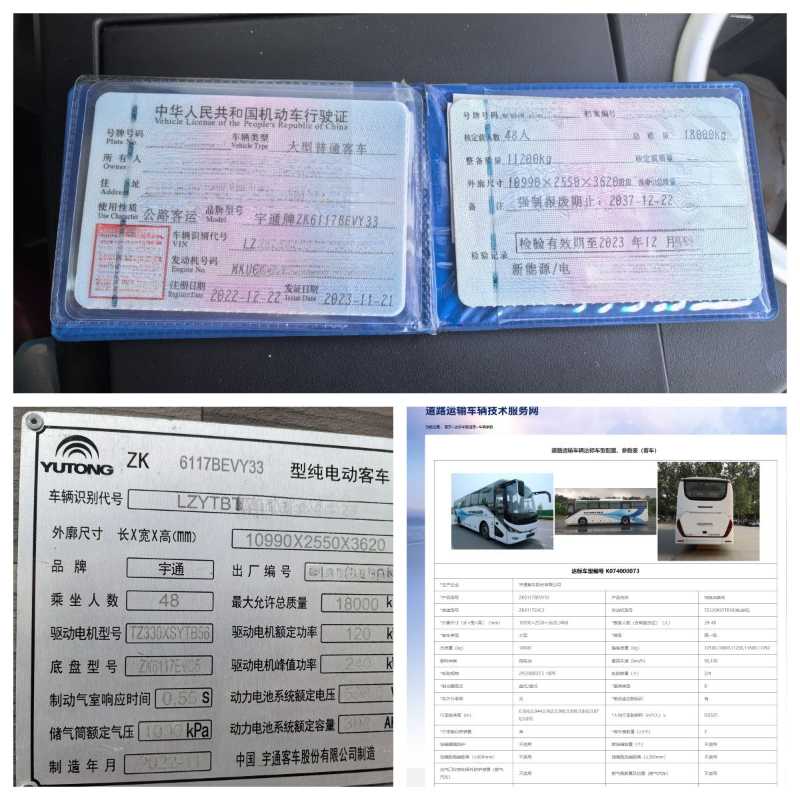 2022年12月上牌有公告锅炉暖气48座宇通6117电车