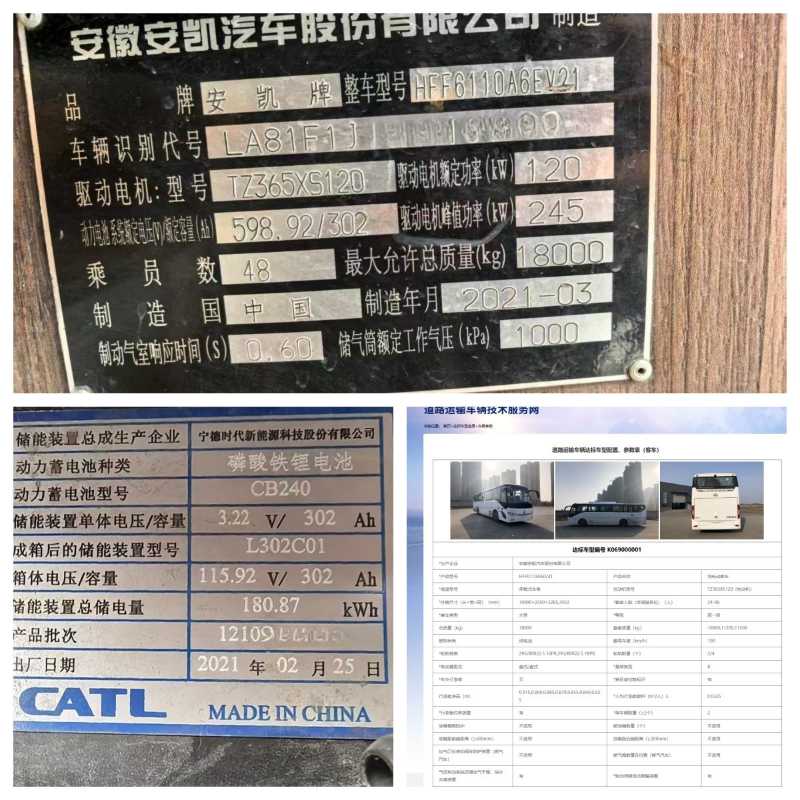 2021年上牌48座有公告宁德时代锅炉暖气安凯6110旅游车