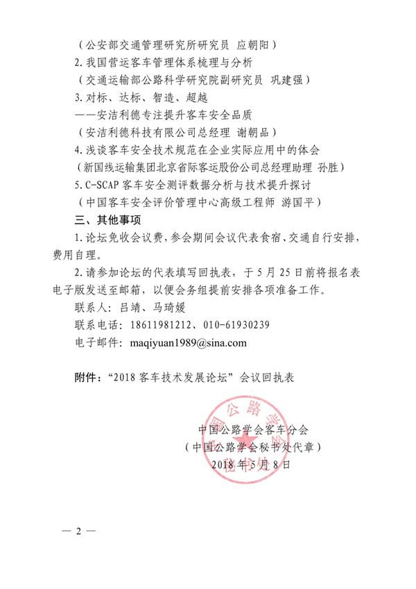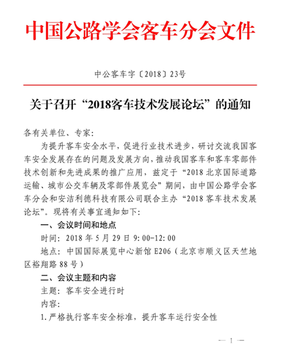 2018年5月29日,“2018客车技术发展论坛”将于北京举行。本次论坛的主题为:客车安全进行时,届时,将有众多业内学者专家亲临现场。以下为论坛通知: