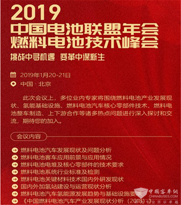 2019全国氢燃料电池汽车产业技术峰会2019年1月20-21日召开