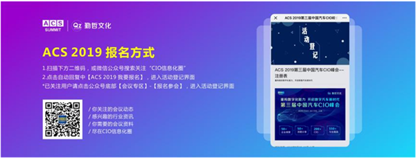 ACS 2019 第三届中国汽车CIO峰会将于2019年7月25-26日在上海举行。