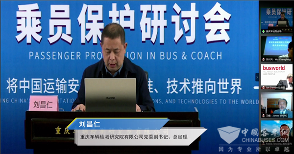 刘昌仁在致辞中表示,作为央企招商局集团控股的国家级第三方汽车检测机构,重庆车检院积极响应国家战略,顺应行业发展趋势,着力打造“试验场+试验室”一体化,具备传统汽车、新能源和智能网联汽车测试评价能力的检测基地,建有3个“国家质检中心”、8个省部级技术平台和2个省部级科普基地,为国内近700家企业的汽车、摩托车整车及零部件产品提供质量检验、研发测试、技术咨询等服务,参与起草客车领域多项国家和行业标准,创建国际领先的《中国客车安全评价规程》(C-SCAP),为客车行业的技术进步提供有力的技术支持。