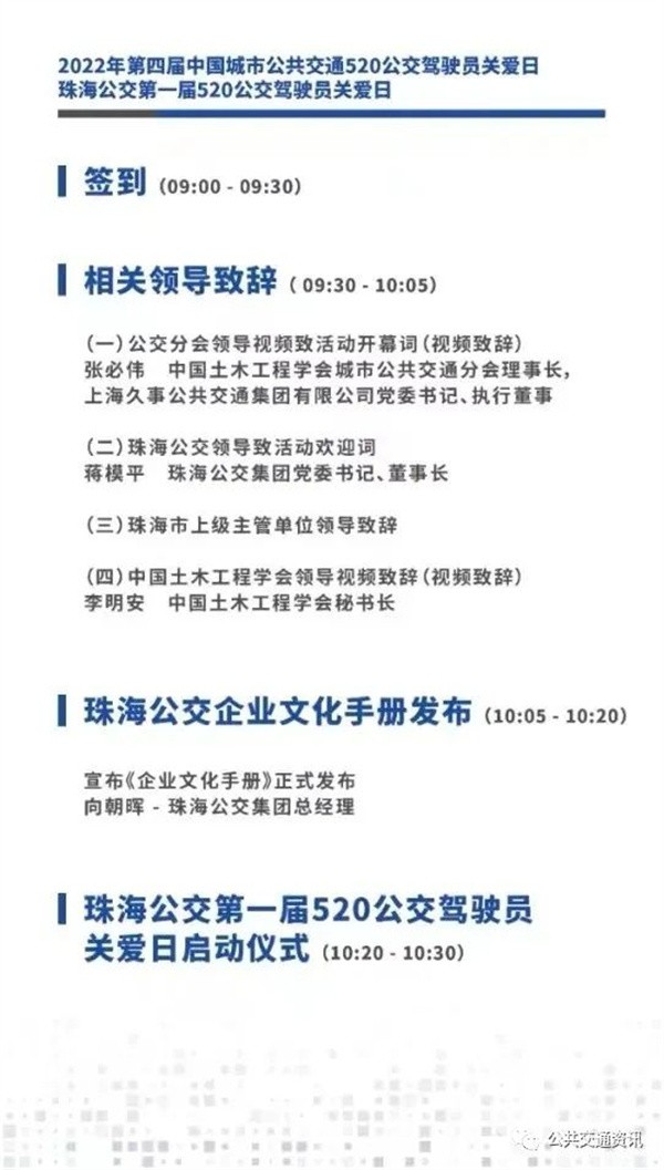 “第四届5.20全国公交驾驶员关爱日暨珠海公交首届驾驶员关爱日”活动议程