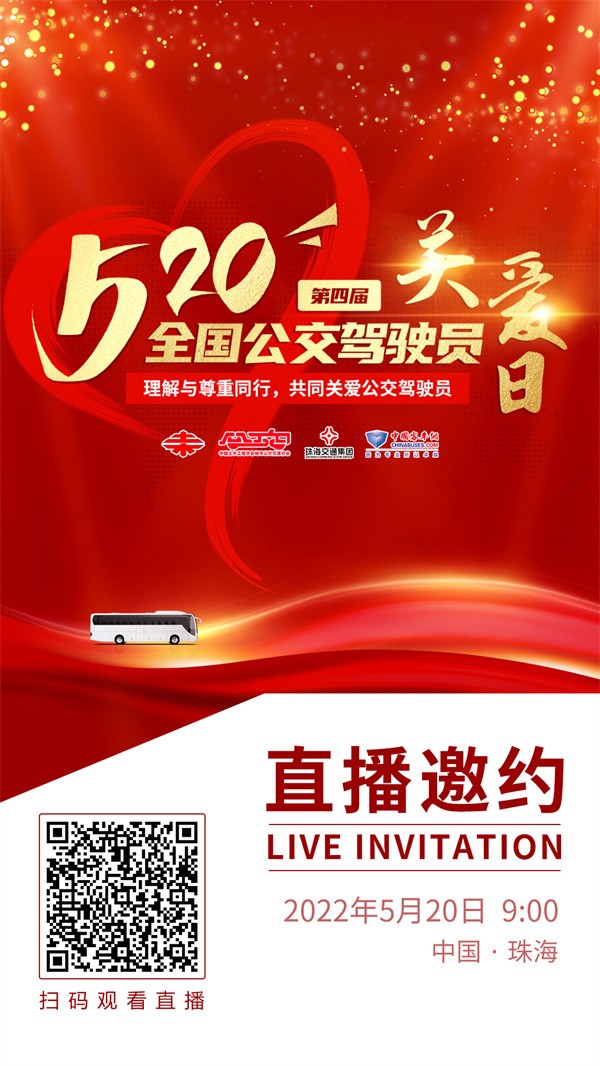 由中国土木工程学会城市公共交通分会主办、珠海公共交通运输集团有限公司承办的“第四届5.20全国公交驾驶员关爱日暨珠海公交首届驾驶员关爱日”主会场活动,将于2022年5月20日在广东珠海举办。鉴于目前疫情防控要求,本次活动将采取线上、线下相结合的方式进行。
