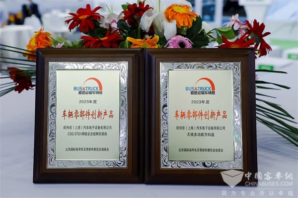 其中,CSG STD1网络安全型网关模块和无线多功能方向盘在本次展会产品评选活动中,均荣获了“2023道路运输车辆展车辆零部件创新产品”奖项。