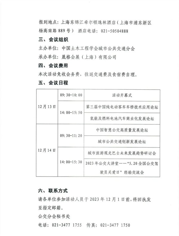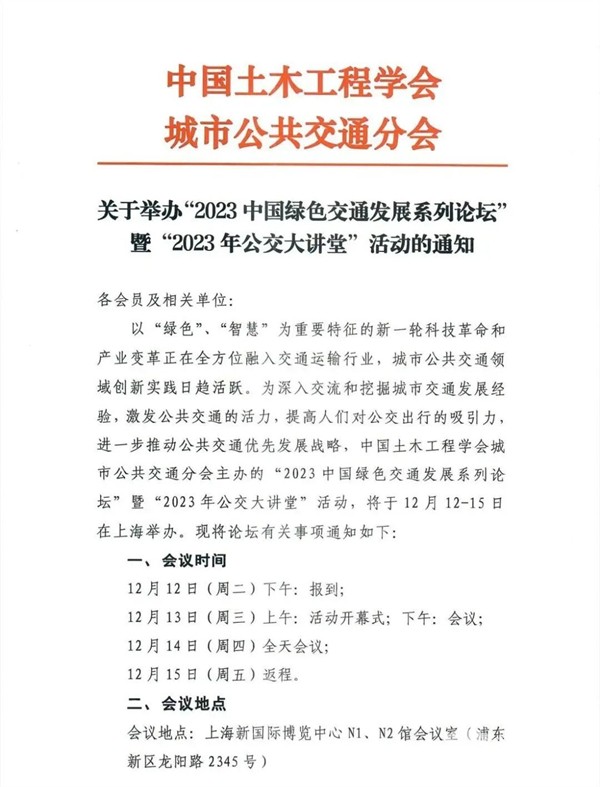 完美作业网有免费视频2023年11月21日获悉,中国土木工程学会城市公共交通分会近期发布了《关于举办“2023中国绿色交通发展系列论坛”暨“2023年公交大讲堂”活动的通知》,本次活动将于2023年12月12-15日在上海举行,其中也提到了有关本次活动的具体安排,全文如下: