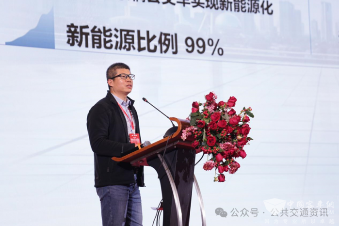 上海久事公共交通集团有限公司技术机务部高级主管宣志樑作题为《向新而行:新质生产力 助力公交提质增效》的演讲,从车辆数字化管控(车辆实时状态、车辆维修过程、车辆智能检测),智能化设备应用中遇到的问题及企业联合实训基地的建设等方面,分享了久事公交在新质生产力助力下的公交探索经验。