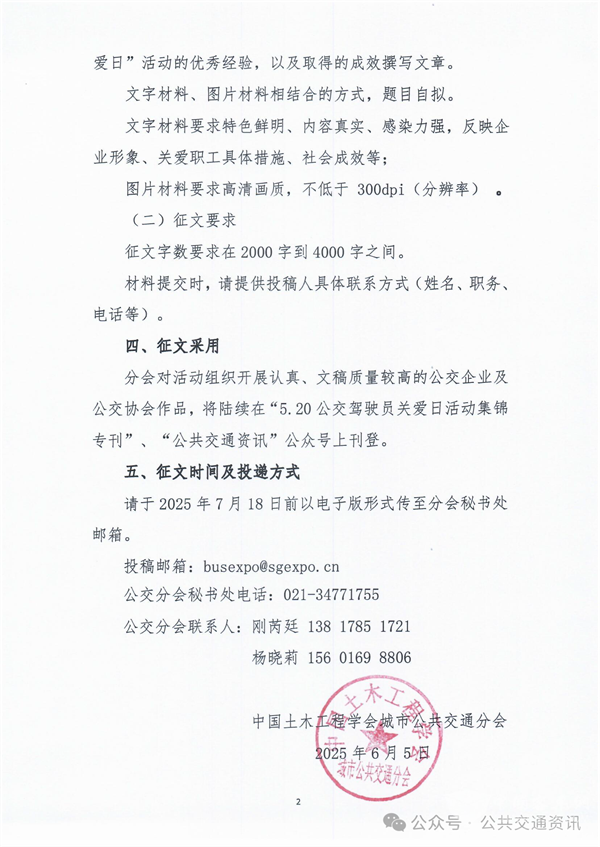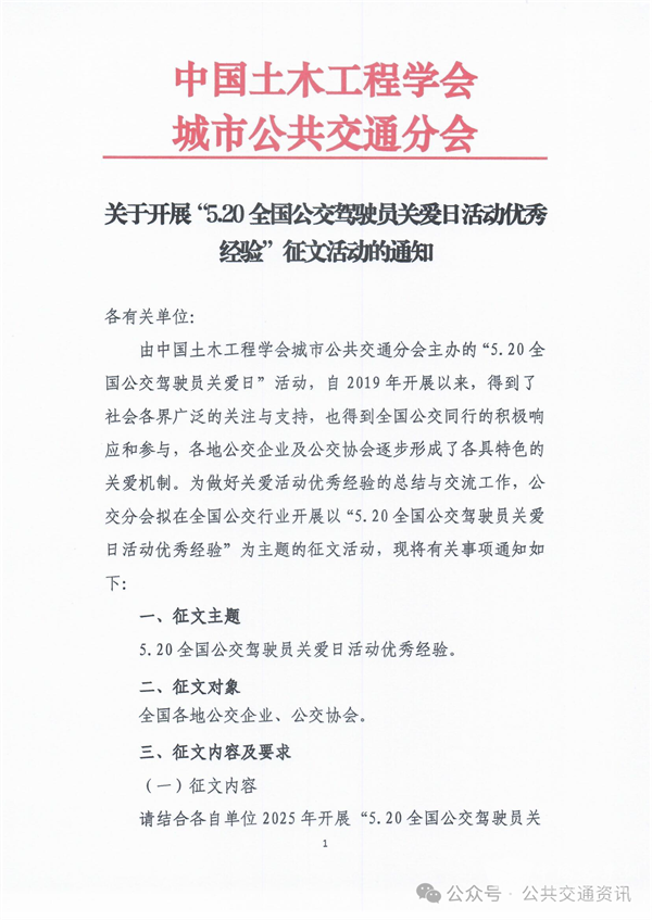 关于开展"5.20全国公交驾驶员关爱日活动优秀经验"征文活动的通知