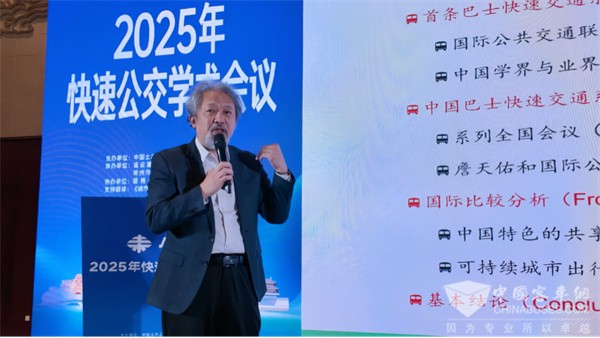 吴强代表中国土木工程学会城市公共交通分会快速工作部作《2025年快速公交工作部年度报告》,自2005年我国首条快速公交线路正式开通以来,累计有41个城市,开通了近500条快速公交线路(含支线),累计行驶里程近50亿公里,运送乘客超过150亿人次,其中2024年行驶里程超过3亿公里,运送乘客超过7亿人次,为保障广大人民群众交通出行,构建城市公共交通出行体系,推动城市经济社会发展作出了巨大贡献。随后,他围绕完善城市公共交通出行体系、推动快速公交新技术应用、提升快速公交线网运营效率、打造快速公交特色服务品牌等方面,回顾了全国各地快速公交发展的做法和成效,并就快速公交行业下阶段发展方向进行了分享。