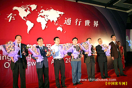 今年大金龙即将迎来18岁的生日。在它走过的风风雨雨中,广大客户、朋友们都给予它支持和帮助,为了感谢他们的支持和帮助,大金龙特别从众多客户中,挑选出几家优秀代表并给予荣誉表彰!分别是获得2005年度最具影响力奖的北京公交控股集团有限公司,获得2005年度战略合作奖的深圳巴士股份集团有限公司,获得2005年度战略合作奖北京巴士股份有限责任公司,获得2005年度战略合作奖的上海巴士事业股份集团有限公司,获得2005年度旅游团队合作奖的上海锦江商旅有限公司,以及获得2005年度海外合作奖的沙特公司。