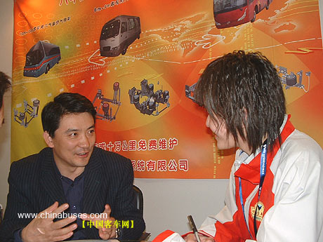 2006年3月28日在上海新国际博览中心举行的2006世界客车博览亚洲展览会上,记者有幸与北京精德精汽车底盘系统有限公司张海峰总经理、高级顾问刘令勤先生进行一番交流。