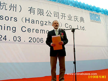 2005年3月24日博客在杭州江干区科技园正式落户开业并下线第一台组装新品,被客车业界及新闻媒体颇予关注。时隔3天,在Busworld我们又见到了博客自信的身影,其中国之行可谓志在必得。媒体也给予博客好评和关注:德国技术和睿智,博客,看你的了!
