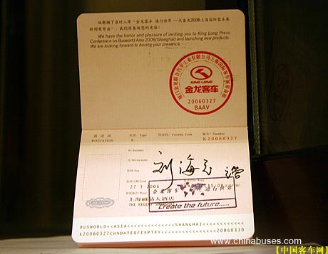 然而,一封"护照式"的邀请函从中脱颖而出。大金龙2006世界客车博览会亚洲展新闻发布会邀请开拓全新的活动邀请设计理念,以红本"护照式"的邀请函,赋予全新的邀请理念,以郑重的盖戳、恭敬的受邀者姓名手写,详细的活动流程介绍的小红本形式将活动信息邮寄到每个受邀者手上,使接收者感到隆重、正式、备受重视。