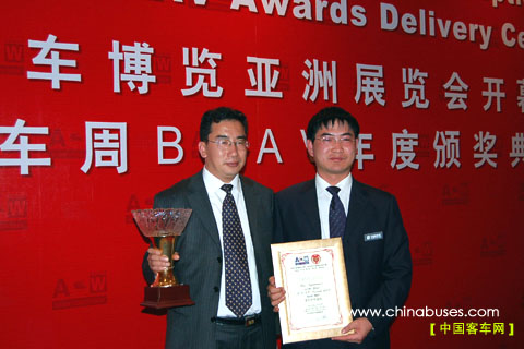2007年3月13日晚,中通客车在2007亚洲客车周(ACW)――BAAV年度大奖颁奖现场迎来了此次展会的重要时刻,将"BAAV