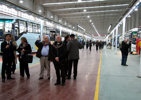 在参观结束后,代表团还重点了解了公司的产能和工人的薪酬状况,表示通过参观厂区对苏州金龙、对海格客车有了更清晰更全面的认识,高度赞扬了苏州金龙井然有序、干净整洁的生产车间,并对苏州金龙推出的V系大巴给予高度的肯定,尤其是联合Scania推出的顶级豪华大巴,无论是稳定性、安全性和美观性等方面,完全达到欧洲同步水平。