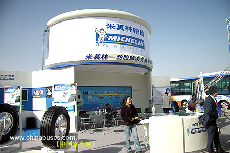 米其林此次参展的轮胎产品是专为城市公交车辆设计的无内胎子午线轮胎。在国外,95%以上的城市公交车辆都采用了子午线无内胎轮胎,这种轮胎的好处是安全、舒适,行驶里程更长,并且可以重刻沟和再翻新,从而大大地延长轮胎的使用寿命,减少对能源的消耗。而在国内,由于种种原因,很多城市公交车依然选用传统的斜交胎。