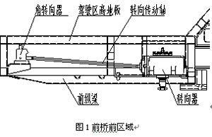 前桥左前纵梁上搭装驾驶区地板骨架。转向器采用卧式布置方式,在驾驶区地板骨架上焊接转向器支架等零部件。见图1所示