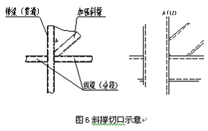 注1:在处理斜撑与纵横梁焊接时斜撑切口处理可采用图6所示,避免产生焊接应力集中。