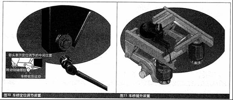 纽威车桥提升装置安装在车架之下的中间位置,节省空间(见图11),它通过一个附加的有钢索的支承架与横梁相连。
