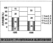 而在柴油机上,由于气缸爆发压力大大升高,不会出现活塞环轴向高度降低的趋势(图4和图5)其中活塞环高度的降低很可能出现在缸径小于75mm的柴油机上,而在商用车柴油机上,甚至于由于爆发压力升高而倾向于加大活塞环高度。当考虑到应用轴向高度低的活塞环对降低摩擦功率有相当作用时,要特别注意对轴向耐磨性可能产生的影响。