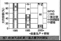 图6表示镀层相对耐磨性的比较。GDC工作表面镀层的磨损率是迄今为止最低的。特别是对柴油机而言,热负荷承载能力/抗烧损能力是必需的,而铬氮和氮化钢环不能满足现代柴油机的要求,因此通常不使用。高负荷承载能力镀层的试验表明,在目前典型的发动机应用中没有明显的差异,仍然能根据所能达到的极限负荷来作出有关镀层热负荷承载能力的结论。CKS镀层满足了目前批量生产的要求,并能通过GDC来扩大其应用范围。MK-Jet和PVD性能处于镀层分级的上好水平。