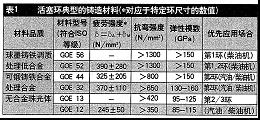 当今活塞环应用各种品质的铸铁材料和钢。首先考察铸铁材料,按照用材料强度、延伸率、疲劳强度和耐磨性等指标表征的承载能力,可选用的铸造品质的全部范围见表1。对于第一道压缩环应特别优先选用一种具有高抗弯强度和弹性模数的球墨铸铁,其基体为马氏体,以获得高的硬度,可使侧面具有较好的耐磨性。
