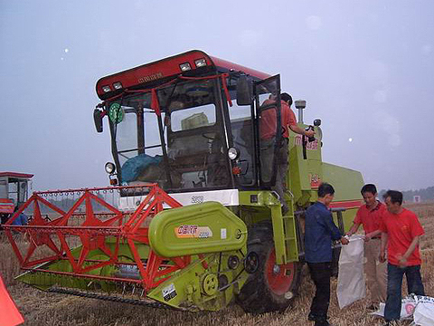 来自农业部、河南省政府的领导官员在启动仪式上发表着热情洋溢的讲话,在南阳最大的麦场里,各路联合收割机一字排开,机手们个个摩拳擦掌,随时准备开割的号令。尽管仪式安排在傍晚时分举行,但是所有参与企业和农民代表们都热情高涨。农业部长孙正才一声令下,收割机犹如赛场上的长跑运动员,向前冲锋。在现场,我们看到一台配装YC4D的"新疆-2A"2080型收割机格外引人关注。机手不慌不忙,非常镇定,按照玉柴农机使用方法,做好了充分润滑,发动机先怠速数秒,在其余收割机先行三十余米时才开始挂档作业,凭着玉柴发动机强劲的性能,加上机手熟练的操作,一气呵成,后发制人,几个来回便率先完成所属麦道的收割作业,令在场农户们赞叹不已。