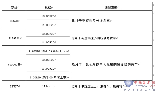 此次新品发布,“风驰通”将陆续推出卡车用轮胎UT3000Ⅱ及FS595Ⅱ两款商品共计6个规格,以满足更多用户的需求。其中,拥有出众的驱动性能、防湿滑性能以及耐热性能的UT3000Ⅱ,适配于中长途用卡车的驱动轴以及一般公路用卡车的全轮位。它的1100R20规格产品已于今年8月份率先进入市场,1000R20规格产品也将于9月份上市。而FS595Ⅱ则适配于长途用卡车的全轮位,拥有优异的排水性能、静音性能和耐偏磨性能。9月份上市的规格为1100R20和1000R20。