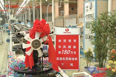 2002年初,东风朝阳柴油机有限责任公司分立成为东风朝柴公司和东风朝阳思益公司两个公司,东风朝柴公司走以集柴油机产品开发、生产、销售为一体的专业化发展道路。这次分立实现了真正意义上的主辅分离,主业更加精干,为合资、上市准备了条件,同时轻装上阵也为企业带来了巨大的活力。2002年提前两个月实现了几代朝柴人梦寐以求的年产10万台目标,2004年率先达产中国高速车用柴油机第100万台,又一次燃起了中国汽车工业发展史上的激情岁月。