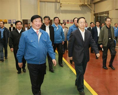 工业和信息化部部长李毅中视察潍柴动力生产车间