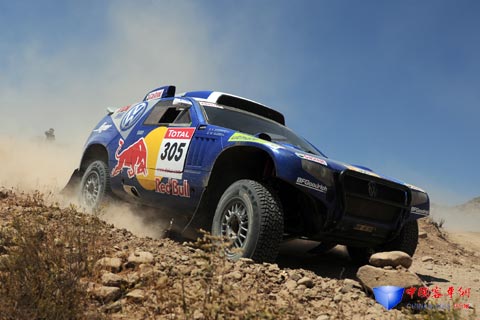 德国大众车队本次派出四辆装配百路驰All-Terrain轮胎的途锐赛车出战达喀尔大赛,并且在整个赛事中占据着明显的优势,在总共13个赛段的比赛中赢得10个赛段冠军。大众车队的Carlos Sainz(塞恩斯)曾经雄霸积分榜长达一周时间,但这位西班牙车手在SS12赛段中的撞车事故彻底断送了他的夺冠希望。本届达喀尔拉力赛的赛道地形极为多变,从平坦的高速赛段到高耸的沙丘。