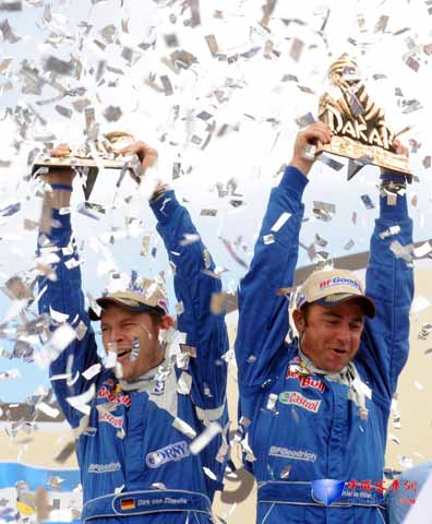 1月20日,使用新款百路驰All-Terrain轮胎参赛的大众车队Touareg(途锐)车手Giniel De Villiers(德维利斯)在布宜诺斯艾利斯夺得他职业生涯的第一个达喀尔大赛冠军。这位南非车手的美国队友Mark Miller(米勒)在他身后冲过终点线,帮助大众车队在首次在南美洲举办的本届达喀尔拉力赛上包揽了冠亚军。而对于越野拉力赛事领域最知名的轮胎品牌百路驰(BFGoodrich)而言,今年已经是第九次在达喀尔大赛上夺冠。