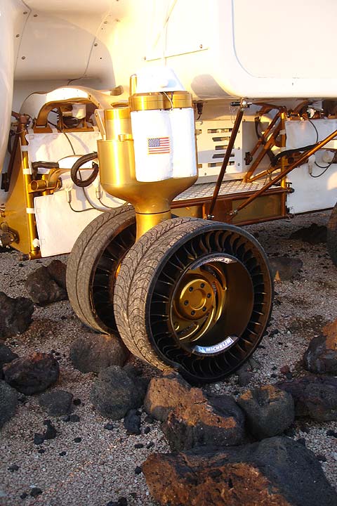 从2008年10月31日到11月13日,作为美国宇航局月球模拟测试和评估项目的一部分,米其林月球车轮在美国夏威夷经历了严格的测试。夏威夷岛的地形,岩石分布以及岛上的土壤结构都为高质量的模拟月球极地环境提供了理想的条件。