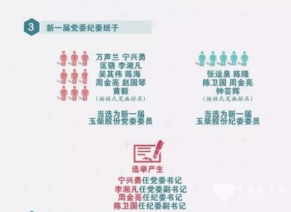 经新一届中共玉柴股份委员会第一次会议及中共玉柴股份纪律检查委员会第一次会议选举,宁兴勇当选为玉柴股份新一届党委书记,李湘凡当选为副书记。周金亮当选为玉柴股份新一届纪委书记,陈卫国当选为副书记。