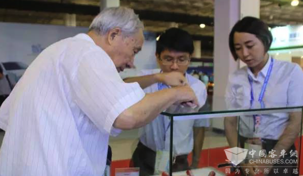 16日上午,一位精神矍铄的老人来到国轩展台,就动力电池及BMS电池管理系统的相关问题与技术人员进行长达二十多分钟的交流。