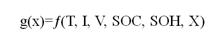 一般我们可以设安全函数阀值为0.8,当安全函数值小于0.8时,就可以判定电池处于危险状态。该公式应用的关键是找到一个合适的滥用判断函数,滥用函数要包含多种与电池状态相关的变量,例如电池的使用温度T,输出电流I,电压V,荷电状态SOC,以及电池健康状态SOH等参数。