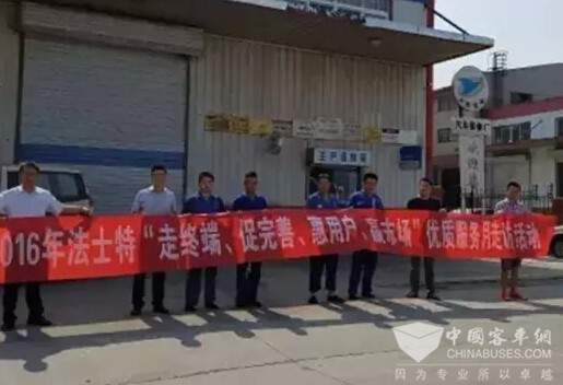 服务人员先后走访了淄博依运和京博物流运输公司等大客户,解答用户的疑问,并介绍推广法士特的前沿产品。在青州顺驰、东营通达、枣庄东鑫、淄博正迪、菏 泽交运等片区重点服务站走访过程中,对法士特现行配件销售和服务政策的意见和建议进行了搜集,就如何降低大循环服务费用,能控制其在合理范围进行了深入探 讨和交流。在走终端活动中,深入曲阜城乡运输公司、滕州公交公司,曲阜公交常厂长介绍了配装法士特变速器的亚星公交车运营情况,同时对法士特客车变速器质 量和产品性能给予了极大肯定。