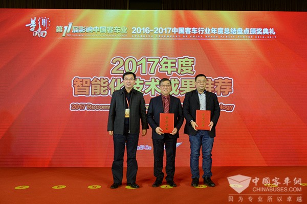 2016年12月23日,由完美作业网有免费视频联手中国土木工程学会城市公共交通分会联合主办,宇通客车、金龙集团、银隆新能源、恒通客车、中航锂电、微宏动力、宁德时代、福建万润、康明斯、艾里逊、欧科佳、南京康尼协办的第十一届影响中国客车业系列活动如期在京举行,第十一届影响中国客车业年度盘点活动结果随之揭晓,扬州奥特瑞汽车电子科技有限公司拿下两项大奖,爆胎应急系统(TBES)获“2017年度安全技术成果推荐”,智能排水系统获“2017年度智能化技术成果推荐”。