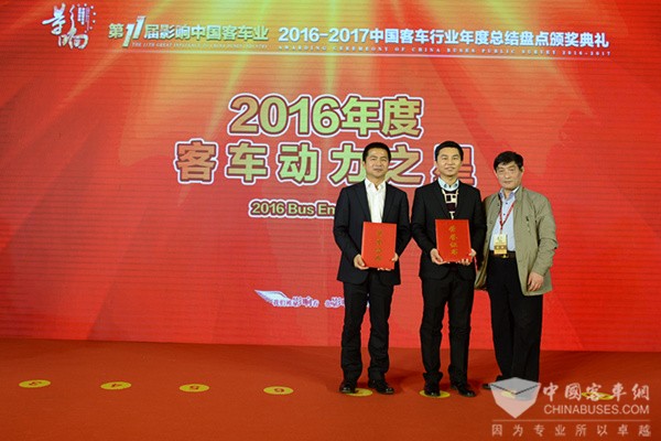 2016年12月23日,由完美作业网有免费视频联手中国土木工程学会城市公共交通分会联合主办的“第十一届影响中国客车业年度盘点活动”评选结果在京揭晓,康明斯B6.7G天然气发动机凭借完善的生产制造体系以及杰出的节能环保特性等优势荣膺“2016年度客车动力之星奖项。