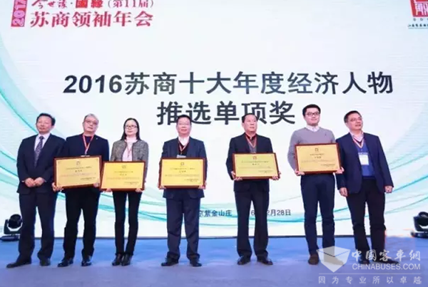 2016年12月28日, 万众瞩目的“2017第11届苏商领袖年会”在南京盛大举行。本次大会以“聚力创新 创富共进”为主题,盘点江苏民企的发展与成就,推动江苏民企在“十三五”期间激发新动能、发展新经济、开创新格局。龙蟠科技石俊峰董事长在会议现场荣获“2016苏商十大年度经济人物最具创新奖”。