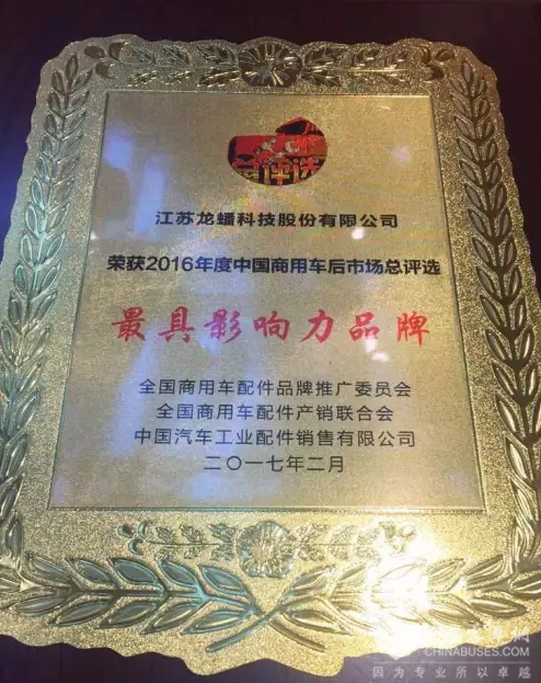 龙蟠润滑油荣获2016中国商用车后市场最具影响力品牌称号