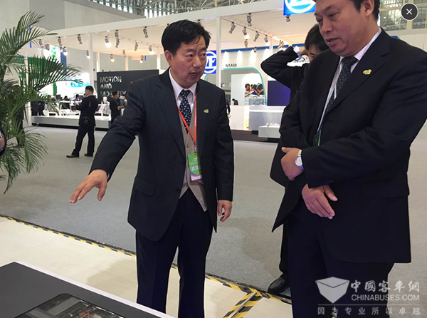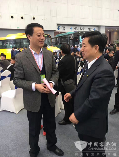 (力神总裁秦兴才与中通客车总经理孙庆民交流)