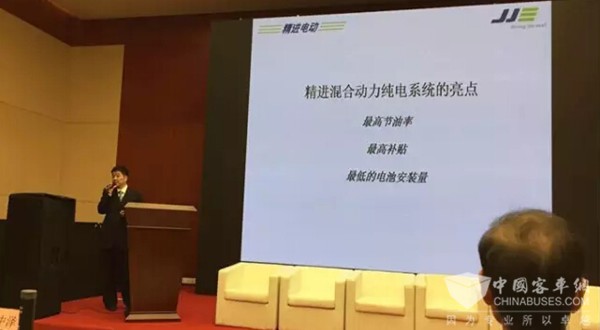 精进电动副总裁李红旗在大会论坛发表了专题演讲,并就当前补贴环境下新能源客车驱动系统对策与在场同行进行了广泛的交流,针对纯电动客车和插电混合动力客车驱动系统发展趋势进行了分析,也现场分享了精进电动最新的技术方案。
