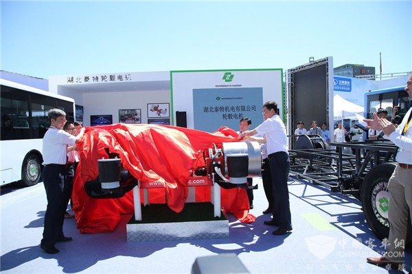 湖北泰特携中国首辆轮毂电机客车亮相道路运输车辆展