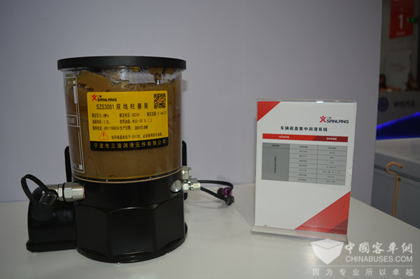 本届上海国际客车展上,三浪公司针对新能源公交、高端客车展出的7款润滑泵产品及相关配件。其中2017年的新产品SCF2042和 SZS3081/SZS3161引起观展者的广泛关注,车辆底盘自动集中润滑系统,保证润滑的可靠性、及时性。