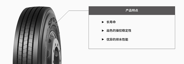 SP122适用于一般铺装路客运公交全轮位使用,根据客运公交日常不间断长时间行驶的运行情况,邓禄普SP122通过设定合理花纹深度、增加花纹刚性以及使用耐磨耗胎面配方,提升耐磨性能,延长轮胎使用寿命;同时,采用全新胎面结构,确保胎面接地压力均一化,实现出色的操控稳定性;此外,胎面采用四道纵向主沟槽设计,保证优异的排水性。