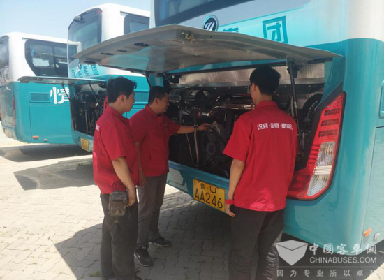 为保障好“家门口”的国际盛会,潍柴还专门成立了服务小组。会前,调度技术精英对车辆进行全方位排查,排除故障隐患,提前投放配件,以备不时之需。会议期间,派驻技术骨干全程保障,提供24小时全天候服务,助力大会圆满举行。