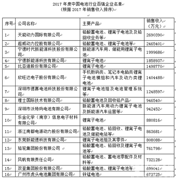 2017中国电池行业百强发布,为什么宁德时代只排第三?
