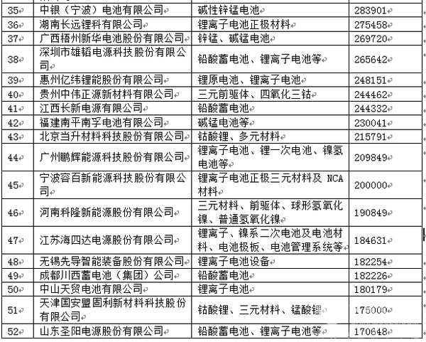 据中国化学与物理电源行业协会介绍,本届百强企业特点如下: