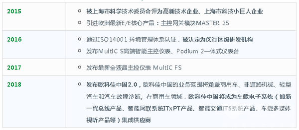 2018,在新四化的浪潮之下,欧科佳中国再次锐意进取,发布欧科佳中国2.0:在商用车领域,欧科佳中国将作为车载电子系统集成供应商,继续引领行业发展。